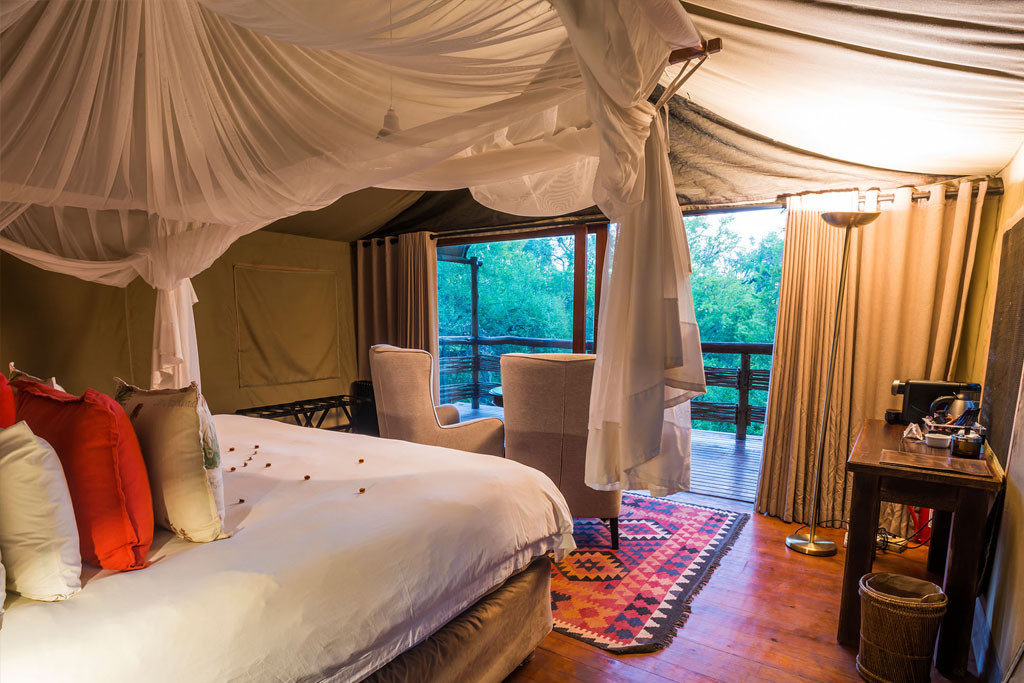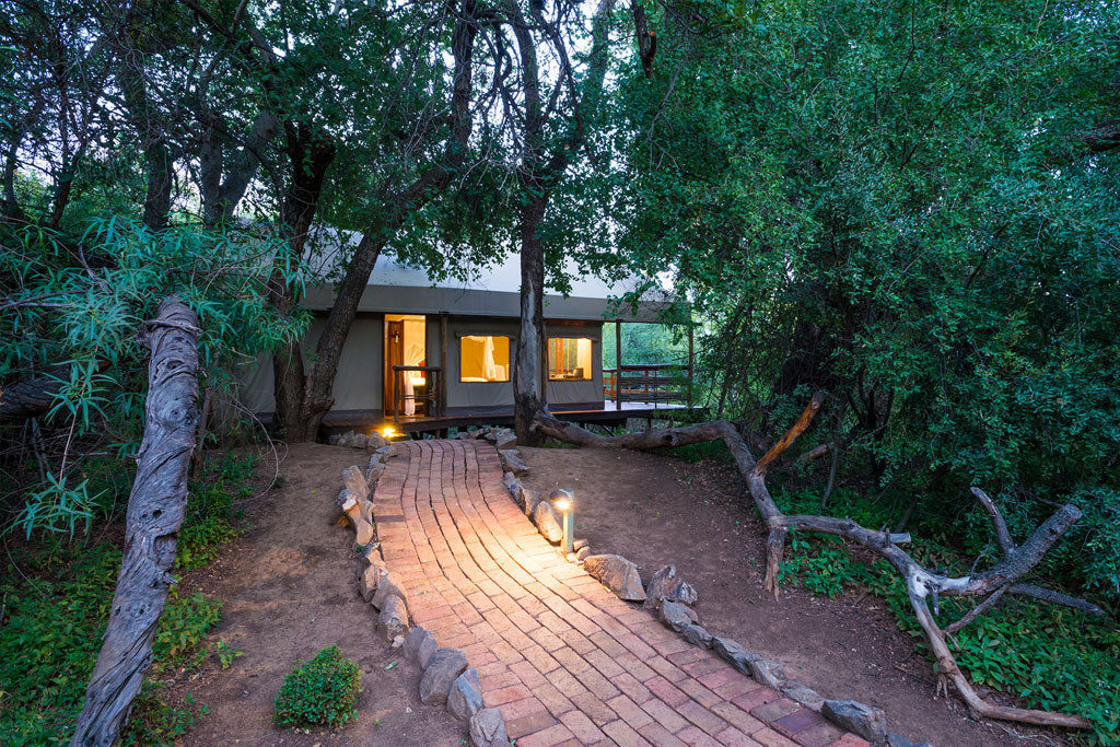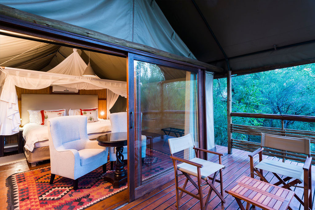 Choose this private location as your introduction to the African wilderness. The 5-star accommodation in Madikwe comprises 12 x Tented Suites that boast a strong Afro-Asian safari ambience and viewing decks overlooking the Marico River. These spacious tents offer every comfort and luxury with features including air-conditioning, hairdryer and power 220vAc. Children are welcome in any of the 4 x Family Rooms, as these tented suites each have an extra queen-size sleeper couch.